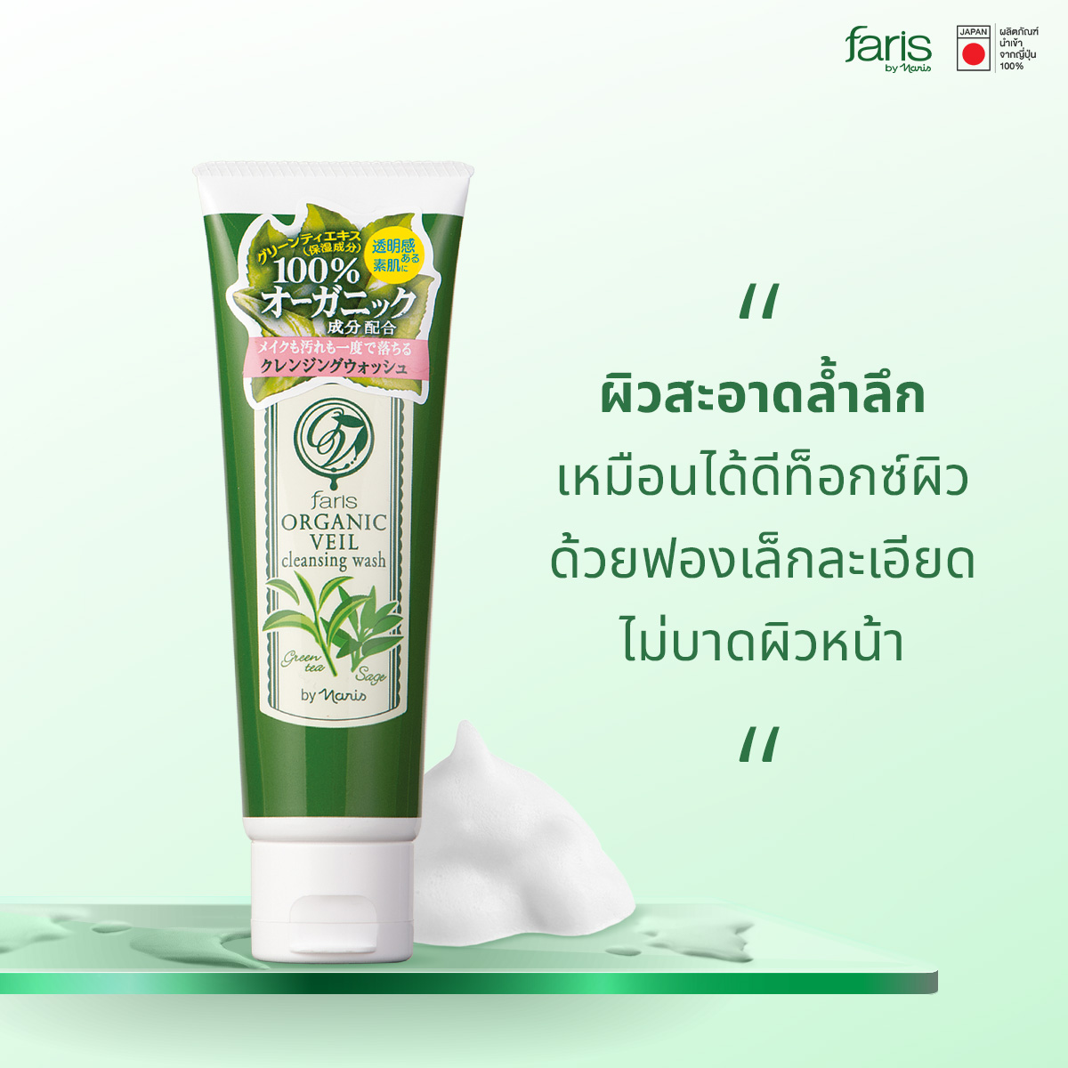 STOP ริ้วรอย! เผยผิวใสไร้สิ่งตกค้าง ด้วยโฟมล้างหน้าชาเขียวออร์แกนิค Faris Organic Veil Cleansing Wash